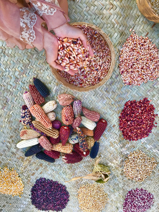 The native corn varieties that these farmers cultivate are know as heirloom corn. The seeds have been passed down from generation to generation and have adapted to local climate and geographics. Due to the endangerment of these varieties, the preservation of the seeds is utmost important to safeguard cultural heritage and food sovereignty.